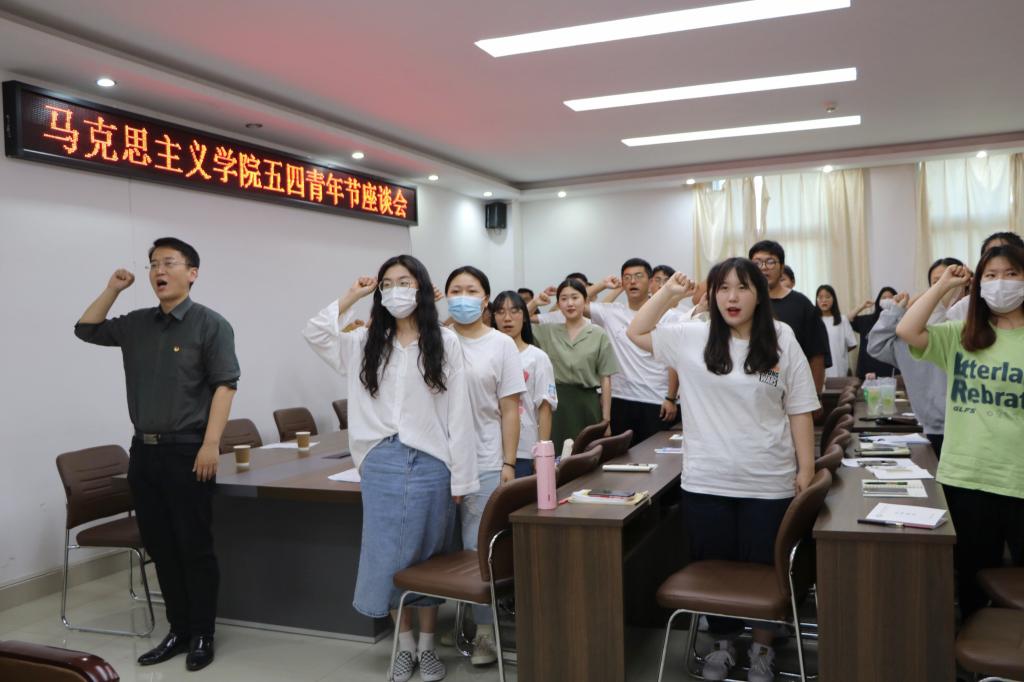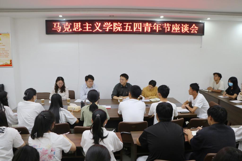 5月4日下午,sjb世俱杯网站在社科楼323会议室召开五四青年节座谈会。世俱杯官网党委书记朱四倍、团委书记曹栋、专职组织员任婷、思政课教师王雨、学生代表共同参加本次座谈会,会议由卢茜雨主持。