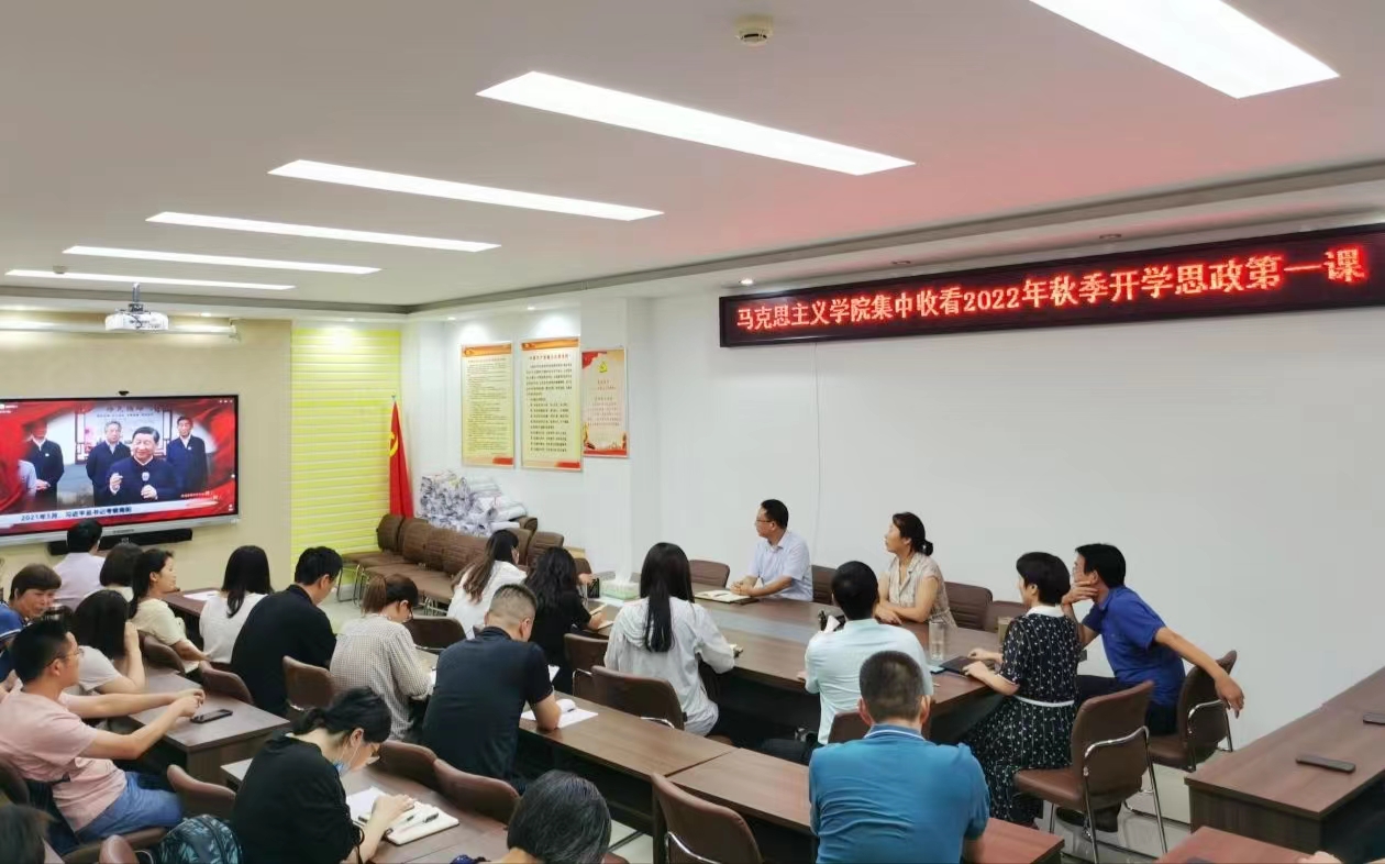 9月15日晚上,为深入贯彻习近平总书记关于“大思政课”建设的重要指示精神,由中共河南省宣传部、中共河南省委教育工委、河南省教育厅主办,河南农业大学和郑州大学承办的以“追寻足迹看我壮丽河山,牢记嘱托践行立德树人”为主题的2022年秋季开学思政第一课正式开讲。sjb世俱杯网站领导全体教师在社科楼323会议室进行了集中收看和学习研讨。