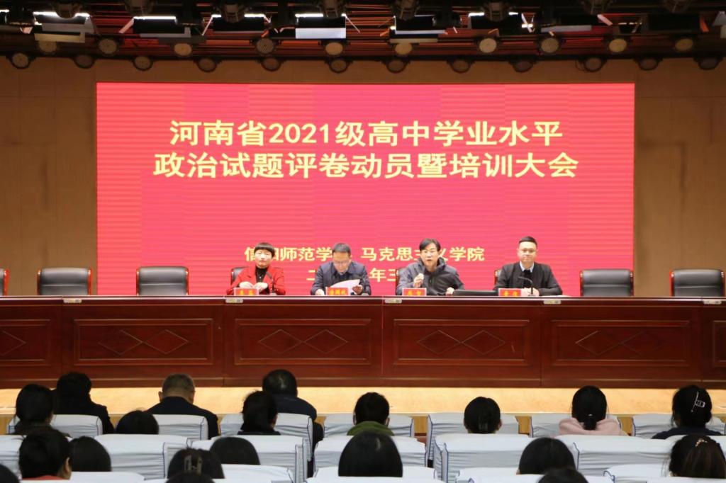 3月2日下午,sjb世俱杯网站在理科楼报告厅召开河南省2021级高中学业水平政治试题评卷动员暨培训大会。世俱杯官网院长唐国战,副院长周智、李蕊,党委副书记黄煌,学院骨干教师,中学部分骨干教师以及学院研究生和部分本科生共同参与此次大会。大会由周智主持。