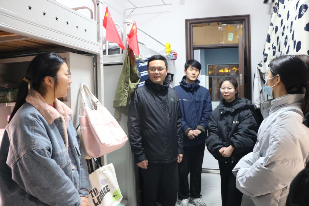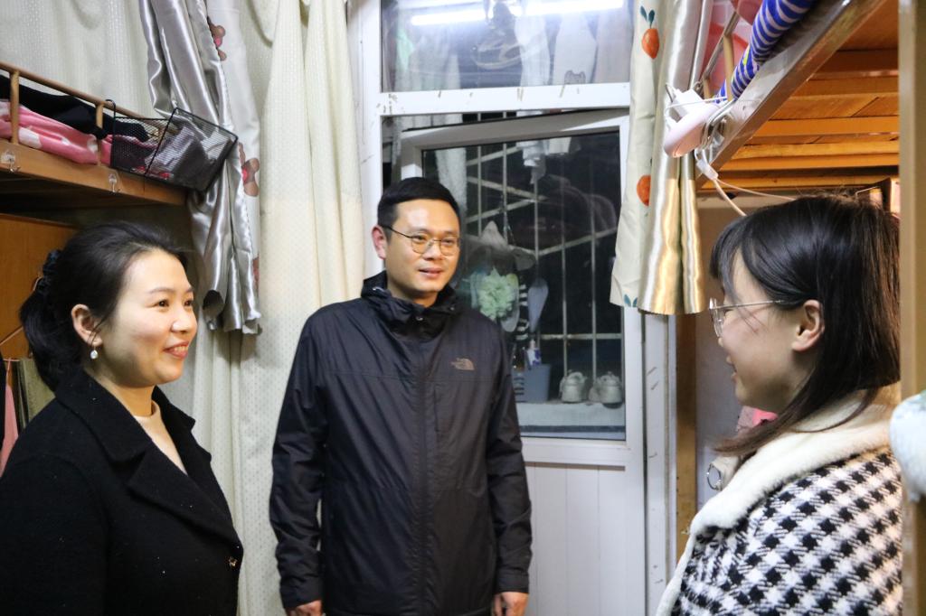 为深入了解学生思想、学习和生活状况,帮助学生解决实际问题,3月21日晚,sjb世俱杯网站党委副书记黄煌、团委书记陶青青、专职辅导员沈海蓄,班主任高小佳、吴梦云以及分团委学生会相关人员共同进入学生宿舍进行走访慰问。