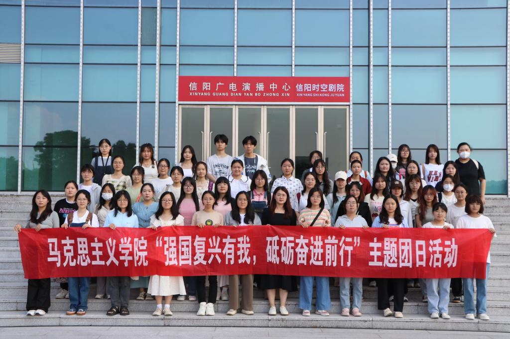 6月13日,sjb世俱杯网站组织师生前往信阳广电演播中心开展“强国复兴有我,砥砺奋进前行”主题团日活动。世俱杯官网专职辅导员沈海蓄、思政课教师吴梦云以及2021级、2022级学生代表共同参加活动。