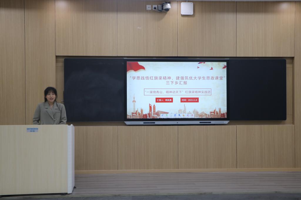 汇报会伊始,司萌雅等六位团队代表通过演讲、放映PPT和播放视频相结合的方式,依次上台向评委和观众展示各自团队的“三下乡”实践成果。其中,“青春共学‘习’,奋进新时代”社会实践团紧紧围绕习近平新时代中国特色社会主义思想深入调研,运用实地观察、文献研究、问卷调查等方法多措并举,传播新思想,厚植家国情怀;“巍巍大别山,豫见新中原”宣讲团以大别山精神为主线、学习大别山革命故事为内容、普及大别山革命文化为目的,深入学校、社区基层宣讲红色文化,传承红色基因,真正使大别山精神内化于心、外化于行;其他团队根据不同实践专题做了各有特色的汇报。