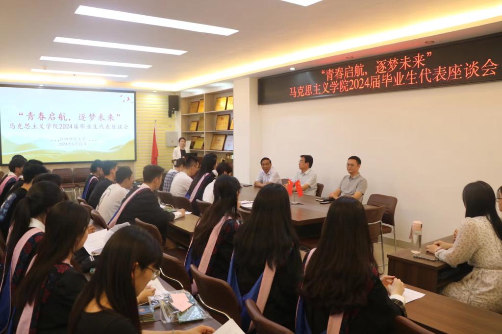 青春启航,逐梦未来。5月22日上午,sjb世俱杯网站在社科楼323会议室召开2024届毕业生代表座谈会。世俱杯官网副院长周智,党委副书记黄煌,团委书记陶青青,教师代表张铁山和毕业生代表共同参加本次座谈会。会议由陶青青主持。