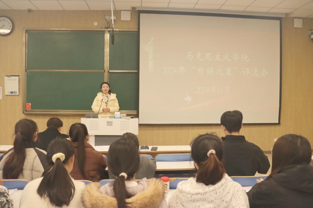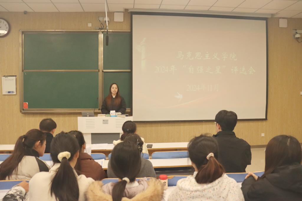 陶青青对本次评选大会做出总结。首先,她指导选手发挥个人优势,树立榜样力量,带动同学们积极响应国家号召,将小我融入大我。其次,她要求在场学生要有榜样、有目标、有信仰,以“自强之星”为标杆,努力成为一个全面发展、德才兼备的思政骨干同学。最后,她强调此次评选会不仅是对个人奋斗历程的肯定,更是对世俱杯官网自强精神的传承和弘扬,她鼓励学院学子在未来的学习和生活中继续发扬自强精神。