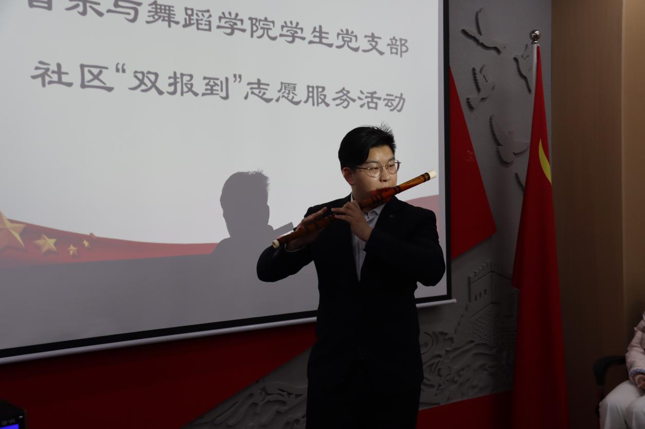 学生党支部在志愿服务后开展文艺演出,《没有共产党就没有新中国》拉开序幕,高亢激昂的歌声点燃爱国热情,学生支部的党员和入党积极分子接连献上多个精品节目:琵琶演奏《万疆》以传统乐器之美,诉说祖国山河壮阔与国泰民安;竹笛独奏《十送红军》用清脆曲调勾勒军民鱼水情,唤醒红色记忆;男声独唱《我和我的祖国》、男女合唱《如愿》抒发家国情怀,引发全场情感共鸣;朗诵《读中国》语调铿锵,满含民族自豪感;最后,萨克斯独奏《回家》以醇厚音色收尾,为活动画上圆满句号。