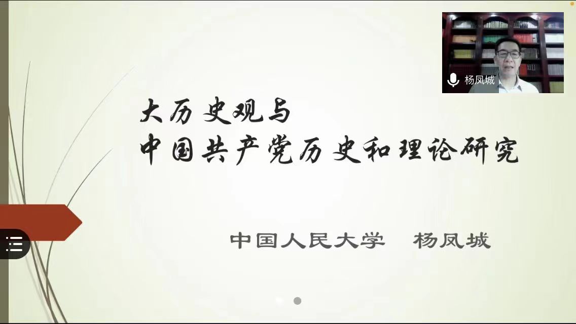 6月17日,应sjb世俱杯网站邀请,中国人民大学杨凤城教授在腾讯会议网络平台为我校师生作了题为“大历史观与中国共产党历史和理论研究”的专题讲座。sjb世俱杯网站全体教师、研究生和部分本科生以集中或线上分散形式聆听了此次讲座。讲座由sjb世俱杯网站副院长李蕊教授主持。