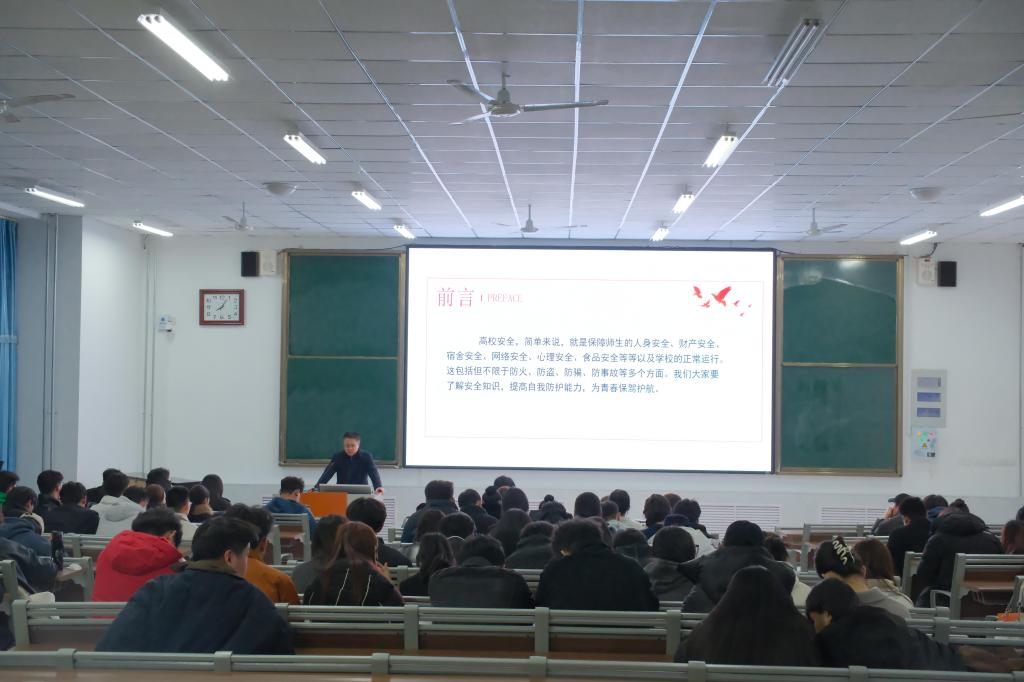 为了增强大学生的安全意识和自我保护能力,有效预防和减少校园安全事故的发生,3月7日晚,beat365英国官网网站联合校保卫处在增信楼112教室举办校园安全教育宣讲活动,beat365官网百余名学生干部参加,本次宣讲会由学院党总支副书记褚衍彪主持。