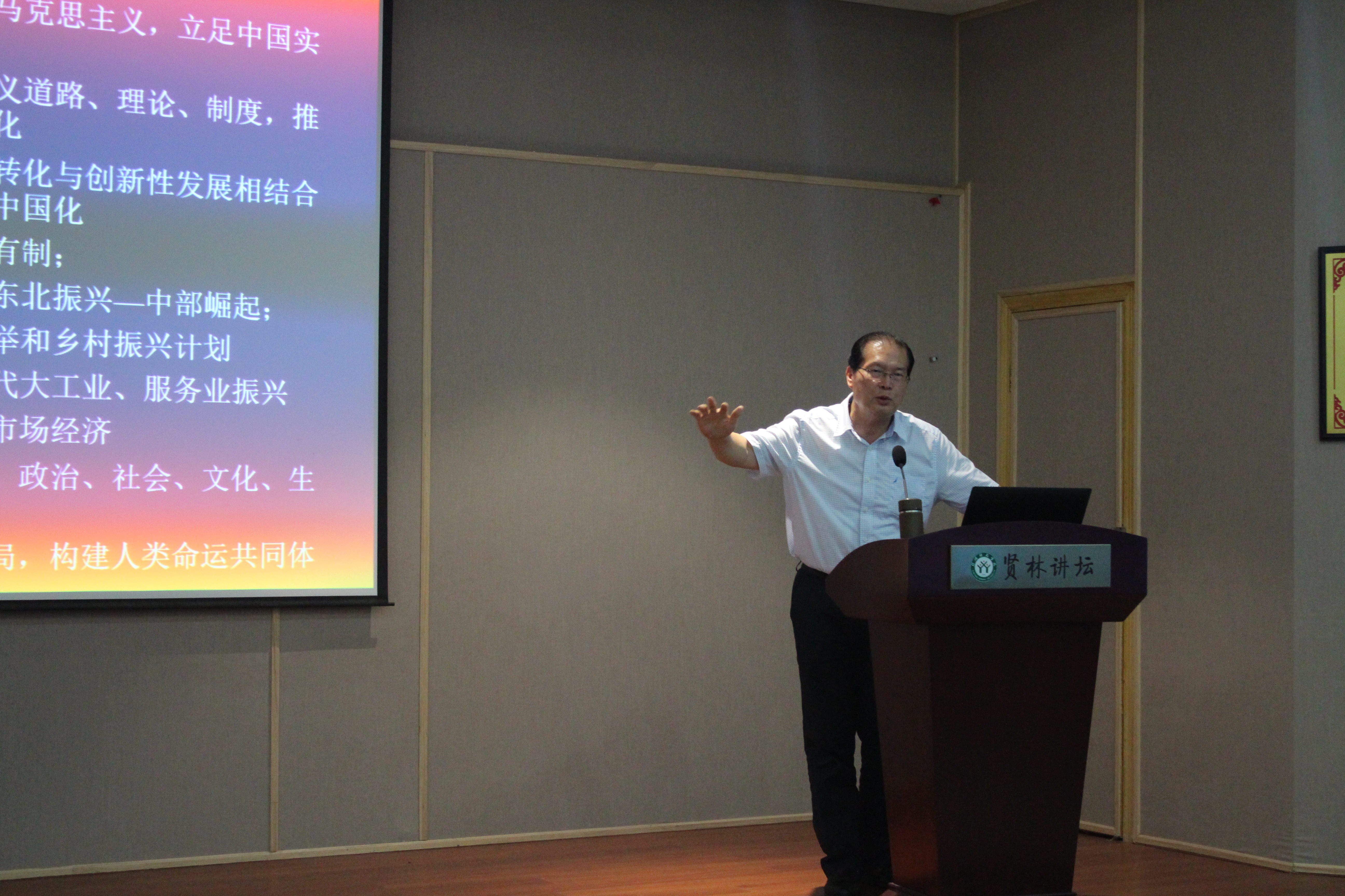 6月25日下午,应sjb世俱杯网站与当代马克思主义研究所邀请,华中科技大学博士生导师欧阳康教授莅临贤林讲坛,为世俱杯官网学子作了题为“改革开放四十年的反思与前瞻”的学术报告。信阳师范学院副校长齐城、sjb世俱杯网站党委书记唐国战、当代马克思主义研究所副所长门献敏及世俱杯官网百余名师生共同聆听了报告。报告会由齐城主持。