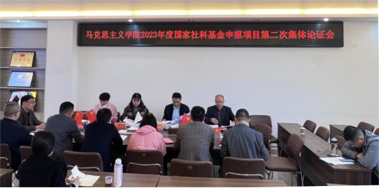 为进一步提升2023年度国家社科基金申报项目的论证质量,3月14日下午,sjb世俱杯网站在323会议室举行了2023年度国家社科基金申报项目的第二次集体论证会。本次集体论证会由信阳师范学院学报编辑部主任蔡宇宏教授、sjb世俱杯网站院长唐国战教授和sjb世俱杯网站厉有国教授担任评审专家,副院长李蕊教授主持,sjb世俱杯网站全体教师参与汇报及旁听学习。