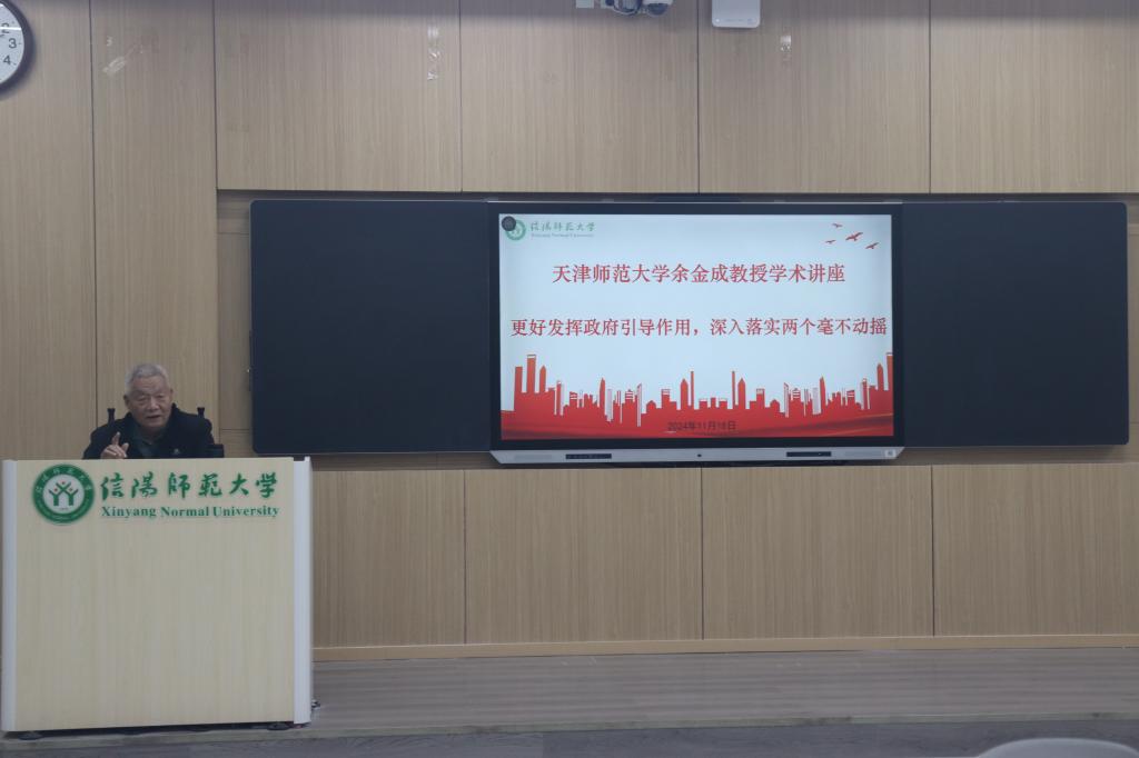 11月18日下午,应sjb世俱杯网站和当代马克思主义研究所邀请,天津师范大学余金成教授在社科楼516教室为世俱杯官网师生作了题为“进一步全面深化改革,更好落实‘两个毫不动摇’”的学术报告。报告会由sjb世俱杯网站副院长程晋富主持,sjb世俱杯网站全体教师及研究生到会学习。