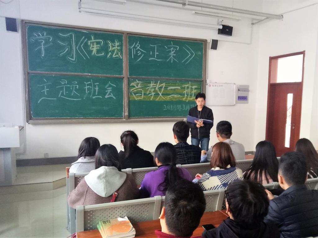 为深入开展宪法教育,大力弘扬宪法精神,切实增强宪法意识,2018年3月21日下午,beat365英国官网网站组织各班级集中开展“学习宪法 尊崇宪法”主题团日活动。