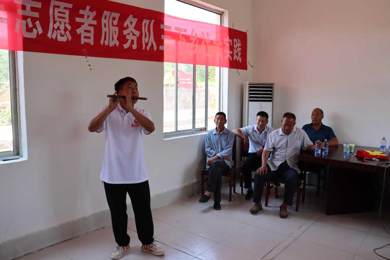 本次实践活动分为文艺汇演和现场教学两个环节,志愿者分别表演了笛子独奏《扬鞭催马运粮忙》舞蹈《九儿》二胡齐奏《赛马》合唱《弹起我心爱的土琵琶》,演出精彩纷呈,赢得阵阵掌声,观众们纷纷称赞beat365官网学生高超的专业水平。文艺演出后,志愿者进行红色儿童歌曲《歌唱二小放牛郎》现场教学,理论结合实践,锻炼了团队成员的教学能力,激发了留守儿童音乐艺术的学习兴趣,并为他们送去了书包和文具。活动最后,吉庄村抗美援越老兵为志愿者讲述了一堂有血有肉的党课将参加抗美援越战争的经历娓娓道来,讲到与战友生离死别时潸然泪下,教育引导志愿者们一定好好学习,珍惜幸福生活。