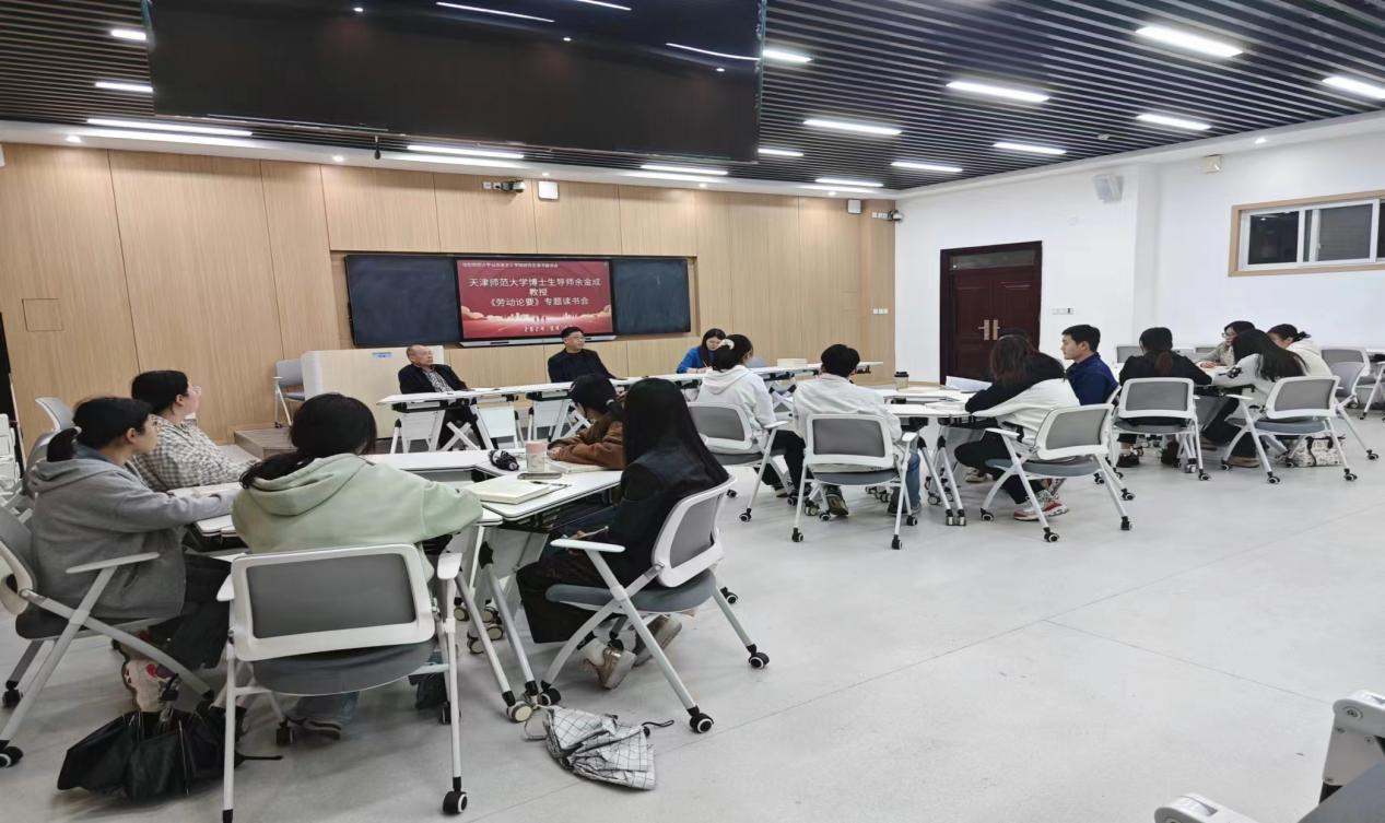 在春意盎然的四月,为增强研究生阅读量,提升世俱杯官网研究生的专业素养和综合素质,2024年4月10日,sjb世俱杯网站召开《劳动论要》专著读书会,sjb世俱杯网站副院长程晋富、研究生班主任厉有国、研究生秘书吴梦云出席此次读书学习分享会,全体2023级学术型研究生参加了此次会议。