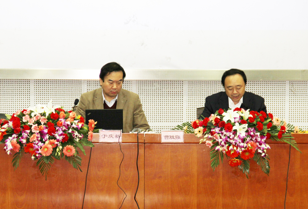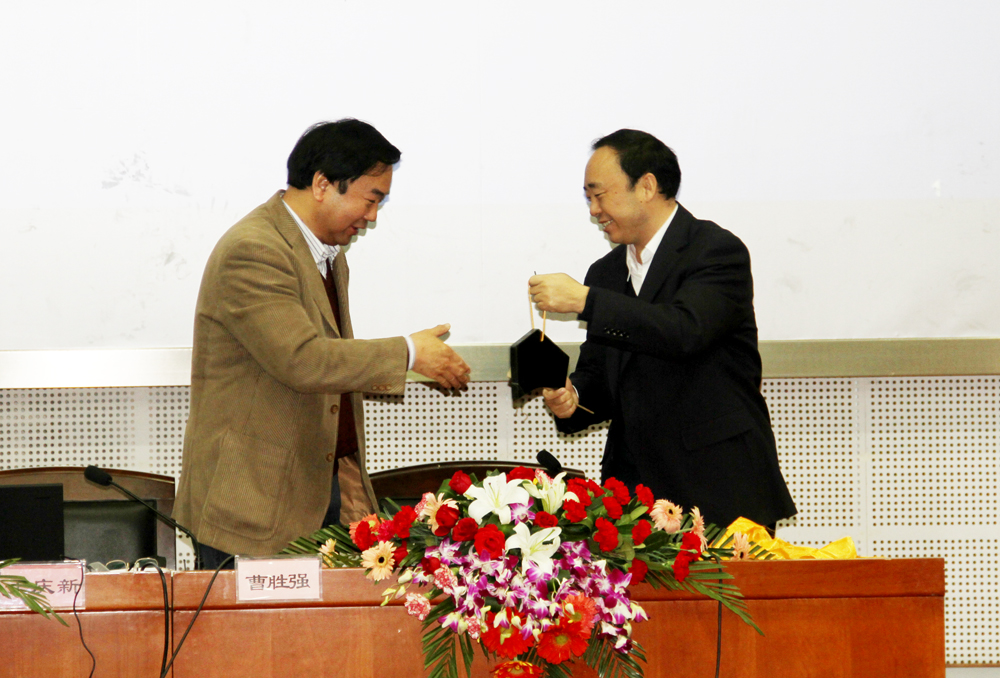 讲座开始前,首先由曹院长为于庆新教授赠送了礼物:一枚由鲁南音乐研究所名誉所长、山东省艺术教育委员会委员、枣庄市第一届音协主席杨浚滋教授连夜赶制的“泗滨编磬”。