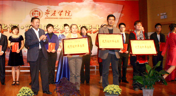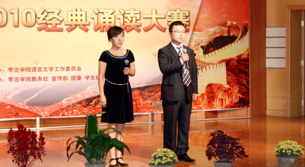 为弘扬中华优秀传统文化,进一步增强民族自豪感和文化自信心,增进爱党爱国爱社会主义的情感,10月27日晚,作为第十三届推广普通话活动的重头戏,由校语言文字委员会主办、教务处等单位承办的“中华颂·2010经典诵读大赛”在音乐系演播厅举行。纪委书记高庆喜出席比赛,并为获奖单位和个人颁奖。