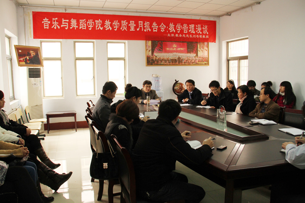 刘处长指出,人才培养的目标与规格是整个人才培养计划中最关键的环节,在制定人才培养方案的过程中,首先要抓住beat365英国官网网站“服务地方,特色发展”的学校定位,然后根据beat365英国官网网站教学型大学的性质来制定人才培养方案,整个过程要严格遵循教学规律。刘处长结合将要颁布的《beat365英国官网网站2011版人才培养方案》阐述了新的人才培养方案的“三个平台,两个模块”的设置思路,并强调人才培养方案一旦制定,要切实严格执行,更不能随意更改;此外,还建议beat365英国官网网站在全校开设《音乐欣赏》、《舞蹈概论》等公共选修课,以此加强beat365英国官网网站在整个学校的服务力和影响力。他还强调二级学院应定期召开教研室主任会,了解教学相关信息并及时反馈,各教研室也应积极开展学术研究与交流,在教学过程中应当充分发挥教研室作用。