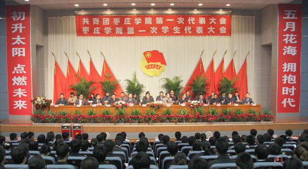 11月11至12日,beat365官网共青团第一次代表大会暨第一次学生代表大会在综合楼报告厅召开,校领导胡小林、曾宪明、高庆喜、李进京、颜世昌,共青团枣庄市委副书记胡安源、山东省学生联合会主席冯赫然,学校各单位、部门的负责同志及学校17个团总支的292名代表参加了会议。枣庄职业学院、枣庄科技职业学院等兄弟院校团委同志到会祝贺。共青团山东省委、山东省学联为会议的召开专门发来贺信表示祝贺。同时,会议还收到山东大学、中国海洋大学、山东师范大学、山东建筑大学、曲阜师范大学、聊城大学、山东农业大学等30多所高校团委发来的贺信。