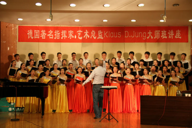 讲座由郑发奋副院长主持,他首先简单介绍了永•克劳斯-迪特尔先生。随后由音乐学院合唱团的学生进行现场演唱,然后迪特尔总监逐一分段落进行针对性讲解,讲解过程中他循循善诱,因势利导,鼓励和指导有机结合,获得了现场听众的阵阵掌声。通过迪特尔的细致讲解,同学们明确了如何做到自如地、充分地、准确地去刻画、诠释、演绎作品,并感受到作为一个歌剧演员或者演奏者站在舞台上必须具备的自信和风范。