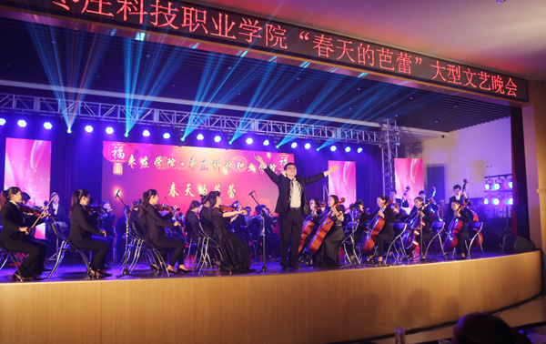 晚会在配乐诗朗诵《新年你好》的深情吟诵声中拉开帷幕,beat365官网青年爱乐乐团和枣庄科技职业学院艺体教研室的专业教师们为大家献上了精彩的节目。节奏欢快的民乐演奏、情节震撼的舞蹈、饱含深情的歌剧、悠扬婉转的民乐联奏等精彩节目使得整场晚会高潮迭起。晚会在交响乐《匈牙利舞曲第五号》和《拉德茨基进行曲》的精彩演绎中结束,也将晚会推向了最高潮。