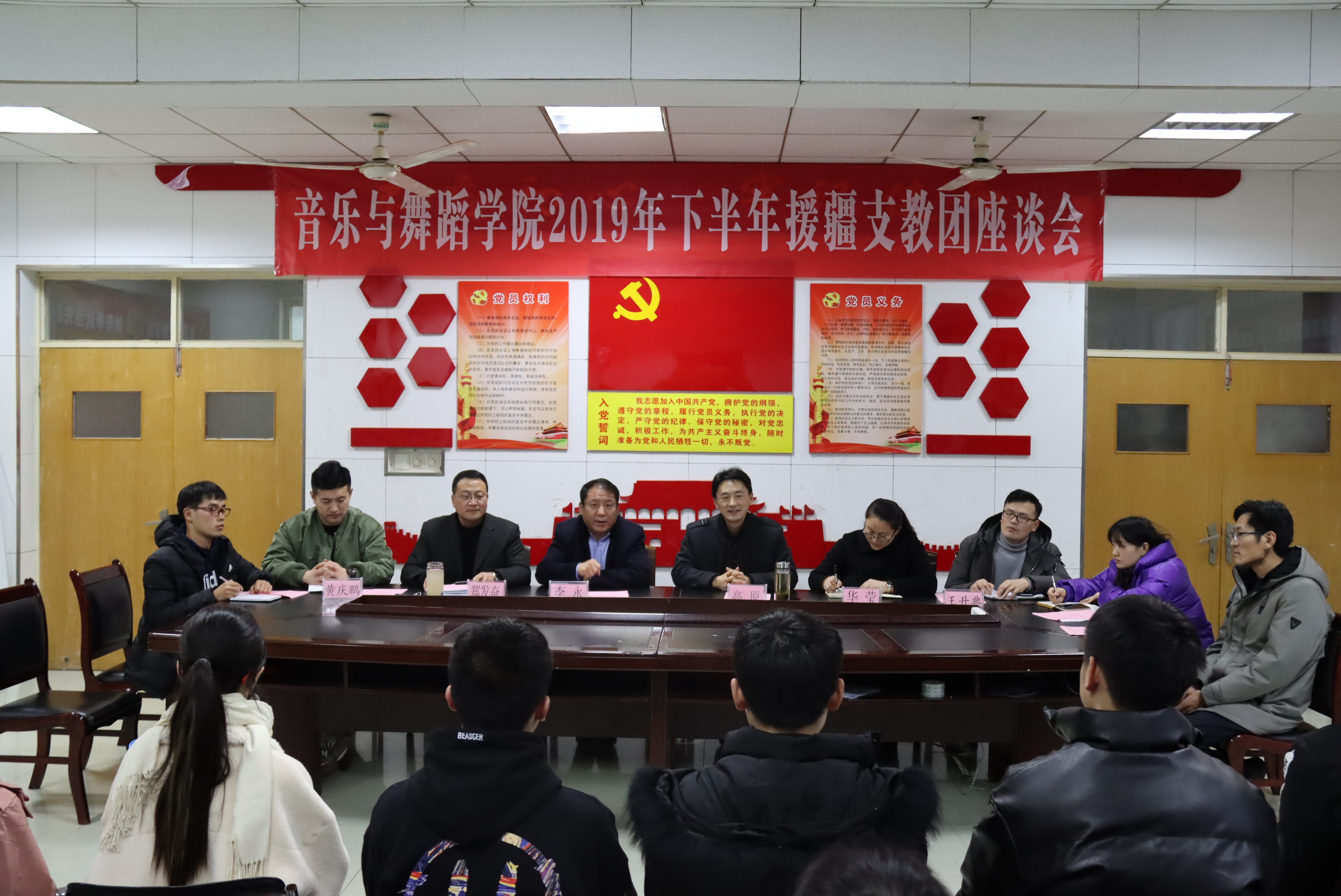 2020年1月6日下午,beat365英国官网网站在3002会议室隆重召开2019年下半年援疆支教团座谈会。beat365英国官网网站党政领导、教师代表、各班辅导员班主任、全体坐班人员、全体2019年下半年援疆支教团成员、在校学生干部、学生代表参加了此次座谈会。座谈会由beat365英国官网网站副院长郑发奋教授主持。