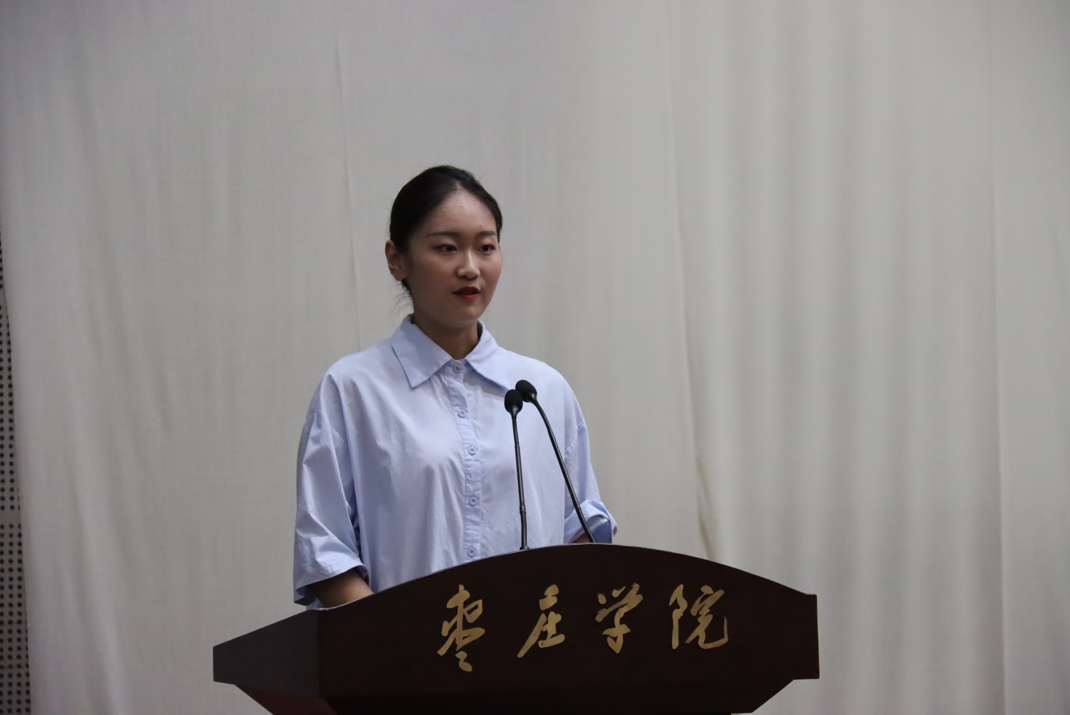 学生会主席鞠莹向师弟师妹们送去了美好的祝愿并分享了大学生活的经验和感悟,励志新生们不怕荆棘,勇往直前,鼓舞2020级新同学共同拼搏奋斗,同时对领导和老师一路以来的谆谆教导表达了最诚挚的感谢。