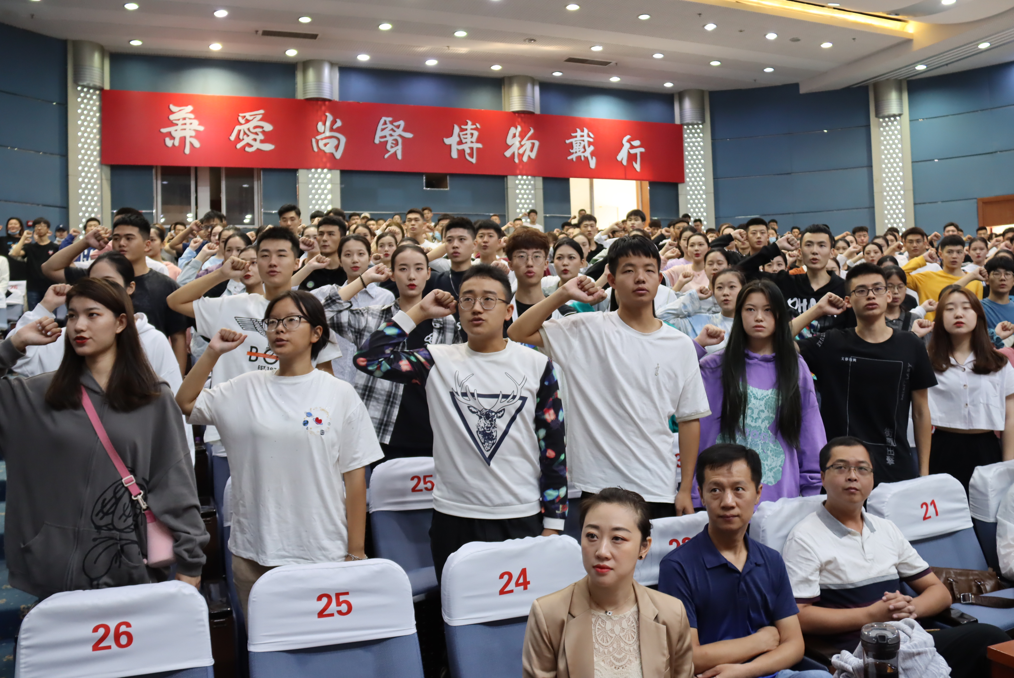 音乐学新生代表刘旭东带领384名学生庄严宣誓:我志愿做一名优秀的beat365英国官网网站学生。谨记校训:兼爱、尚贤、博物、戴行;谨遵校风:厚德、明道、敬慎、固本。坚定理想信念,练就过硬本领,勇于创新创造,矢志艰苦奋斗,锤炼高尚品德,为实现中华民族伟大复兴的中国梦而努力奋斗。慷慨激昂的誓言充分体现了大学生志存高远、朝气蓬勃的精神面貌和奋勇前行、凡事争先的拼搏精神。