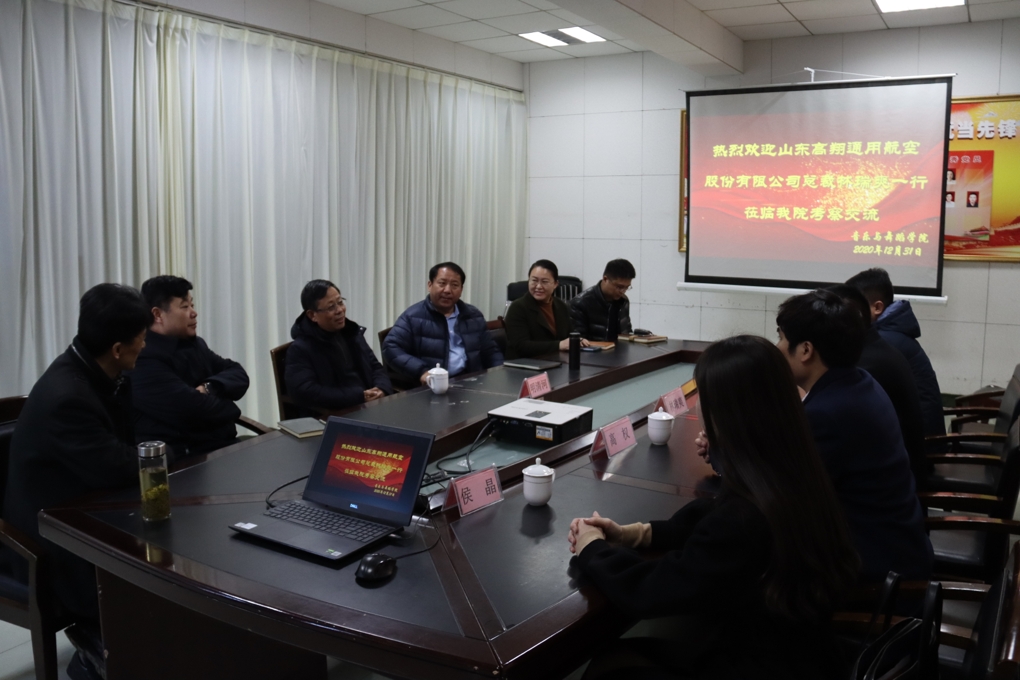 2020年12月31日下午,山东高校通用航空股份有限公司总裁林瑞爽、总经理高权、副总经理宗浩、教学总监侯晶、行政助理祝闻悦一行来beat365官网考察交流,副校长明清河接待了林瑞爽一行,教务处处长安涛、招生就业处处长周磊、鲁班应用技术研究院院长蒋秀英、beat365英国官网网站院长李永参加了会议。