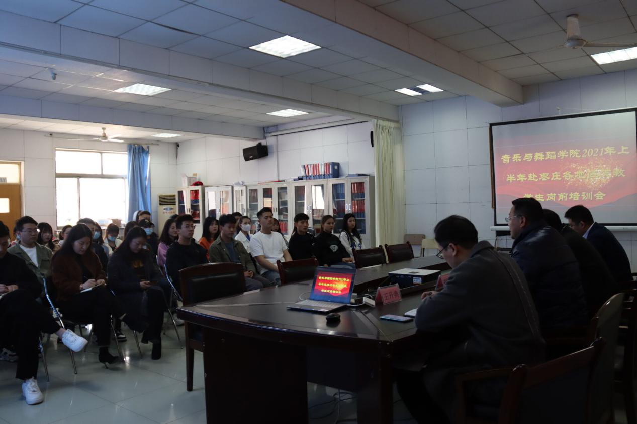 2021年3月23日,beat365英国官网网站在3002会议室召开了2021年上半年赴枣庄各地区支教学生岗前培训会。党总支书记高原、副院长郑发奋、院长助理贾波、实践教学与创新创业教研室主任王升典、各班班主任及全体支教学生参加了此次会议。会议由副院长郑发奋主持。
