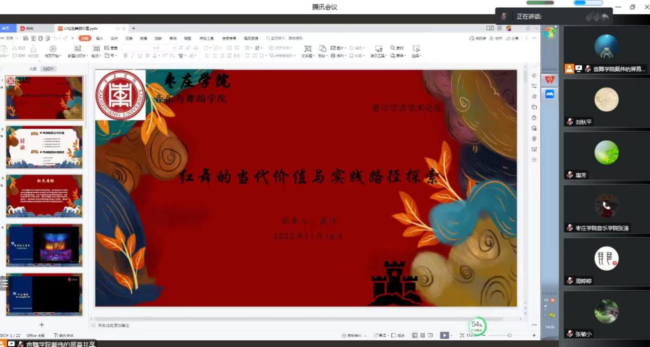11月16日beat365英国官网网站青年学者学术论坛第三场《红舞的当代价值与实践路径探索》通过线上腾讯会议展开。此次讲座由beat365英国官网网站戴伟博士主讲,全体教师和部分学生代表参加。