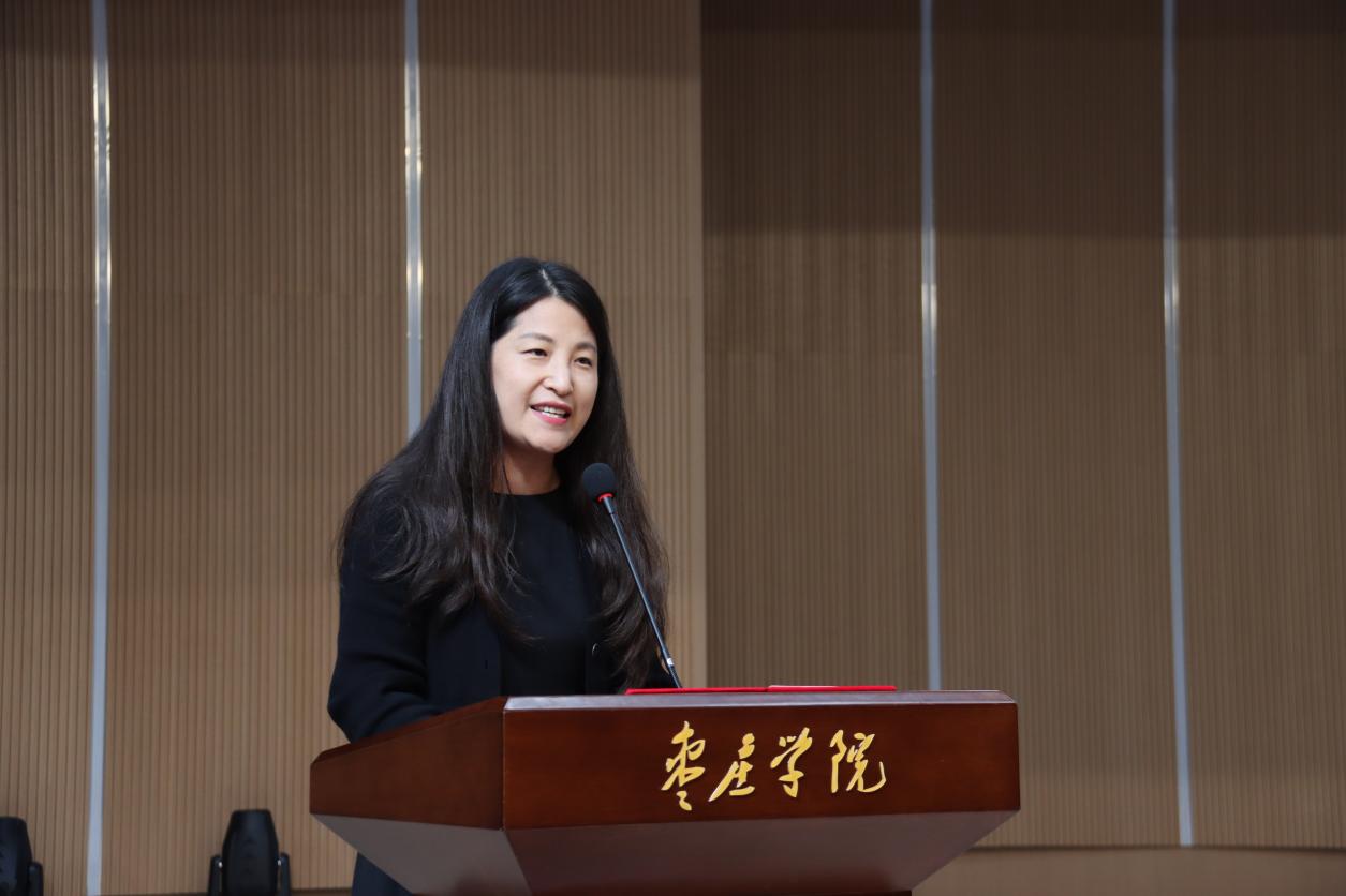 在校生代表王琪同学讲到大学是新起点,要提升品德修养,传承校风校训。珍惜时光,坚守艺术理想,成长为品德高尚的音舞人,为枣院和音舞添光彩,祝愿同学们奋发向上,实现理想。