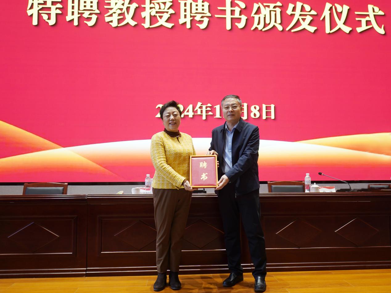 报告开始前,高峰书记为冯润娥颁发beat365英国官网网站特聘教授聘书。