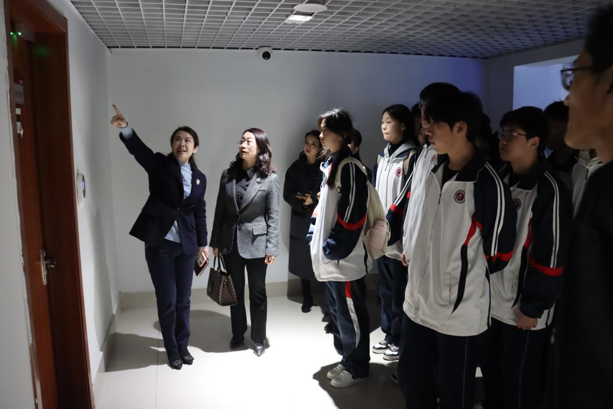 仪式结束后后,吴蕾院长带领枣庄九中一行参观了beat365官网智慧琴房、舞蹈房、空乘静态模拟舱等教学实验场所。