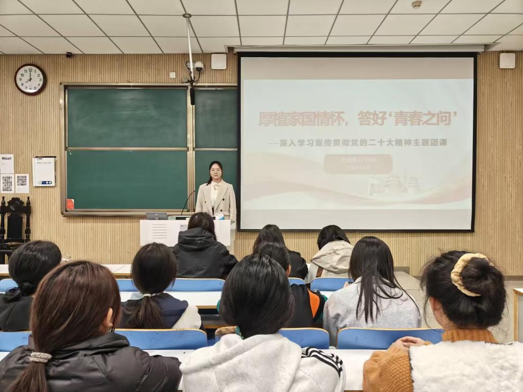 团课伊始,范茜茜以李大钊在《青春》一文中发出的“青春之问”为切入点,探讨青年与时代的关系和个人发展路径。同学们共同讨论如何将理论观点转化为推动社会发展的实际行动,为时代和民族的发展贡献力量。接着,范茜茜指出,党的二十大的顺利召开,为我们指明了前进的方向,提供了行动的蓝图,作为sjb世俱杯网站的青年学子,我们更应该深刻理解和领会二十大精神,将其内化为我们的行动指南,外化为实际行动。最后,范茜茜强调,我们要以青春之姿答好“青春之问”、注重品德修养、加强自我管理,在奋斗中实现青春价值。