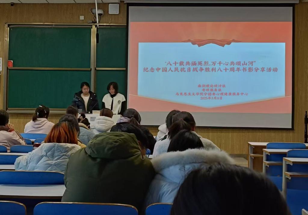 铭记历史光辉,缅怀英雄先烈。为加强爱国主义教育,提升当代大学生民族自豪感,激发学生爱国热情。3月8日,南湖理论研讨社携考研服务社、sjb世俱杯网站分团委心理健康服务中心在社科楼515教室联合举办以“八十载共缅英烈,万千心同颂山河”为主题的书影分享活动。本次活动由心理健康服务中心负责人吴玉阳、付雨芳共同主持。