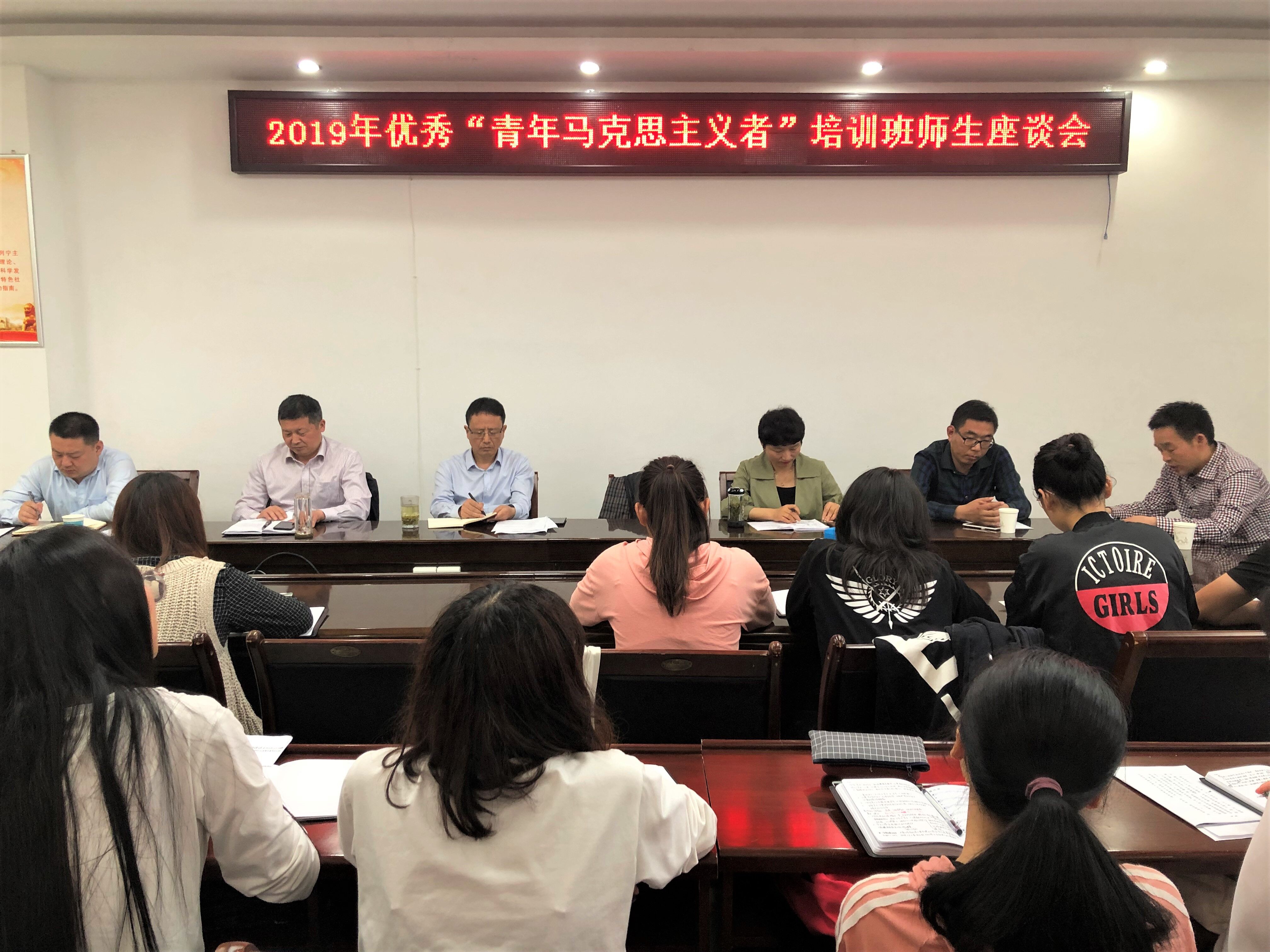 5月14日下午,世俱杯官网2019年优秀“青年马克思主义者”培养工程在社科楼323会议室召开了师生座谈会。世俱杯官网党委书记唐国战,党委副书记徐永新、何晓坚,老师代表李蕊、王帆宇、王建礼和全体辅导员、青马工程全体学员共同参加座谈会。会议由党委副书记何晓坚主持。