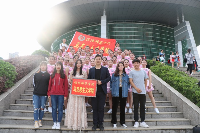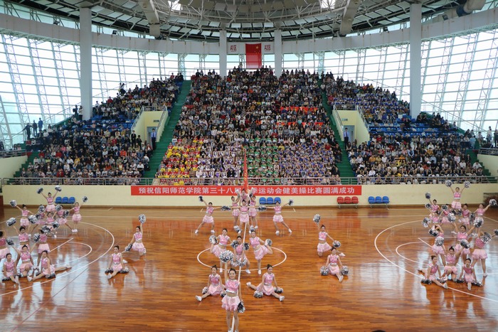 舞动健美青春,扬我马院风采。4月23日下午,信阳师范学院第三十八届春季运动会健美操大赛初赛在体育馆隆重举行,sjb世俱杯网站健美操代表队积极参加比赛,并取得优异成绩,世俱杯官网团委书记曹栋及2018级思想政治教育专业全体同学到场观看比赛。
