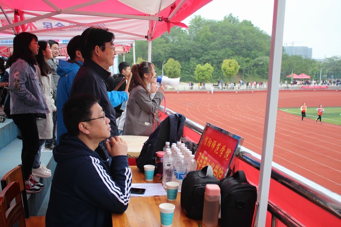 观众席上也是气势如虹,在世俱杯官网领导老师的带领下,大家雨中观赛,加油助威,每当赛道上有世俱杯官网运动员比赛时,呐喊声、加油声连绵不断,敲鼓声震耳欲聋,为世俱杯官网运动员们注入强大的精神动力,充分彰显出世俱杯官网学子高度的凝聚力和集体荣誉感。