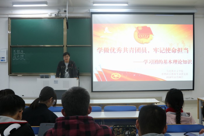 为丰富世俱杯官网学子与团相关的基本理论知识,增强世俱杯官网团员的责任感和使命感,11月26日下午,世俱杯官网“学做优秀共青团员 牢记使命担当”主题团课在社科楼516教室顺利召开。世俱杯官网2018级全体团员共同参加了此次团课。本次团课由河南省“青马工程”学员史弘扬主讲。