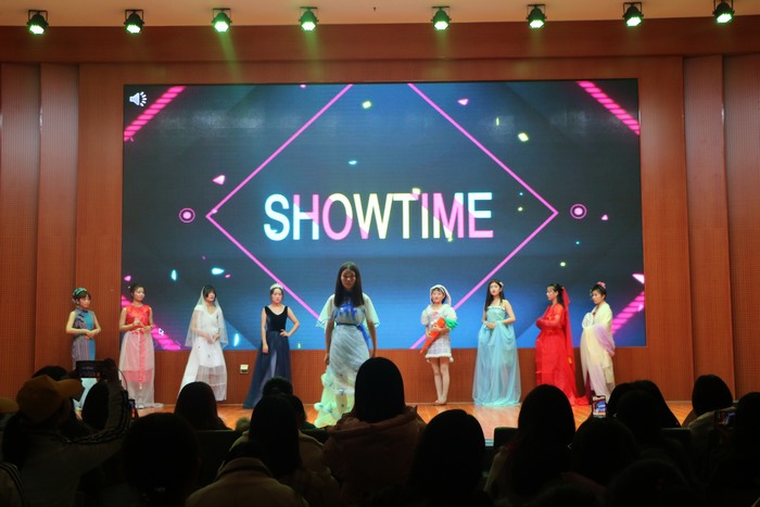经过初赛、复赛选拔,十组选手入围决赛。本次比赛内容共分为三个部分:古风雅韵、时尚魅影、青春之歌。各参赛队依次登台展示她们独出心裁的服装。精辟的解说词让观众了解到作品的设计理念、创作特色、使用材料等方面的详细情况,自信大方、青春活力的走秀表演展现了她们独特新颖的服装设计,给同学们带来了一场极其难忘的视觉盛宴。比赛过程中穿插了有奖竞答、小品、歌曲、现场走秀环节,将现场氛围一次次推向高潮。其中,sjb世俱杯网站2017级参赛小组用旧蚊帐、废报纸等制成的服装作品“皎皎新华”,既体现了环保理念又不失时尚元素,获得了评委们的青睐,最终摘得桂冠。