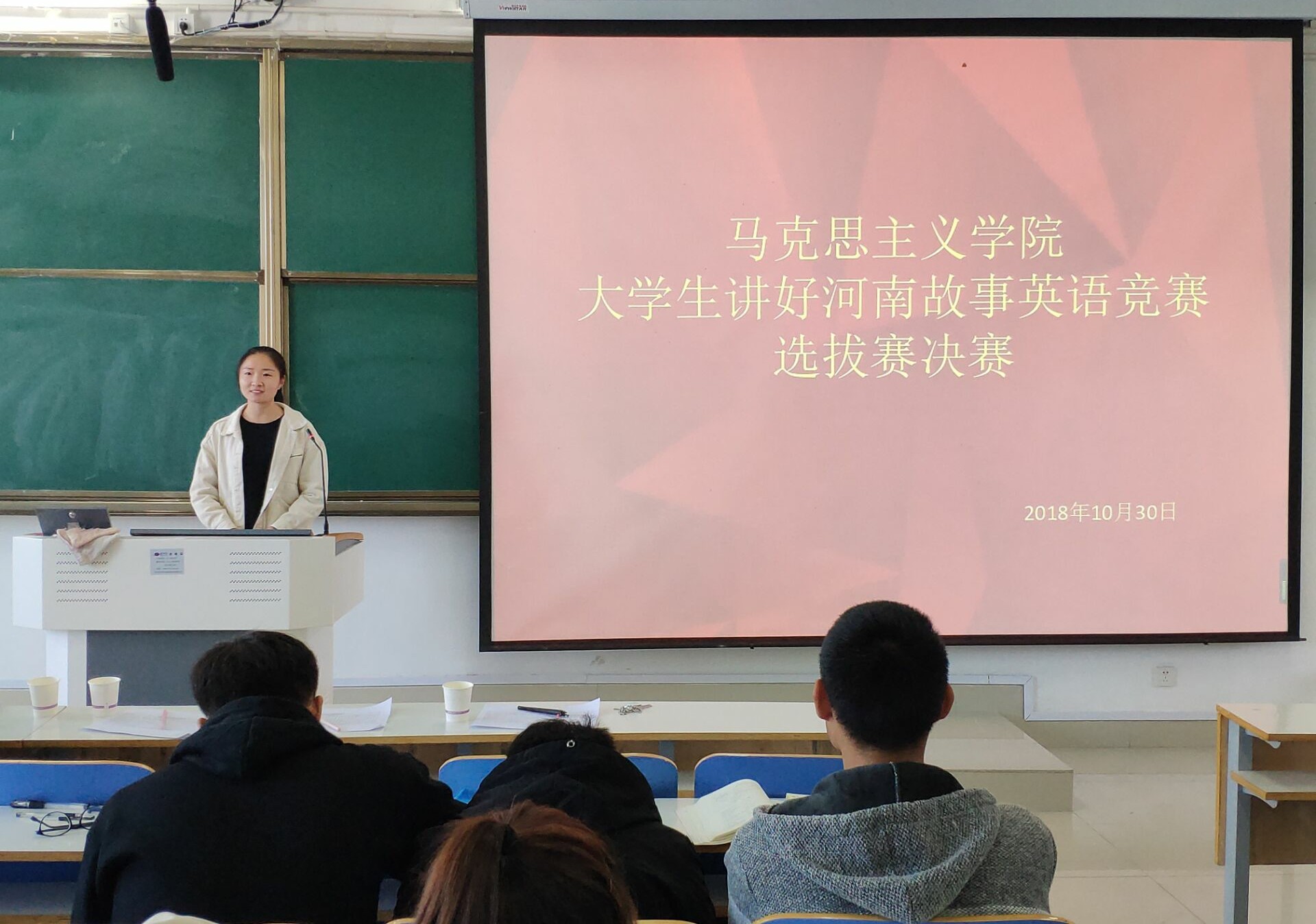 为鼓励在校大学生利用英语宣讲河南,传播好新时代河南声音,10月30日上午,sjb世俱杯网站在社科楼514教室开展“大学生讲好河南故事英语竞赛选拔赛”决赛。科研秘书常文涛、团委老师曹菁菁及2018级全体学生共同观看此次比赛。比赛由南湖理论研讨社社长张静主持。