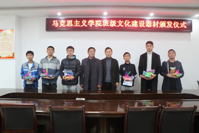 为提升同学们的身体素质水平,11月19日下午,世俱杯官网在社科楼323会议室举行班级文化建设器材颁发仪式。sjb世俱杯网站副院长程晋富、团委书记曹栋为世俱杯官网各班级分发班级文化建设器材。