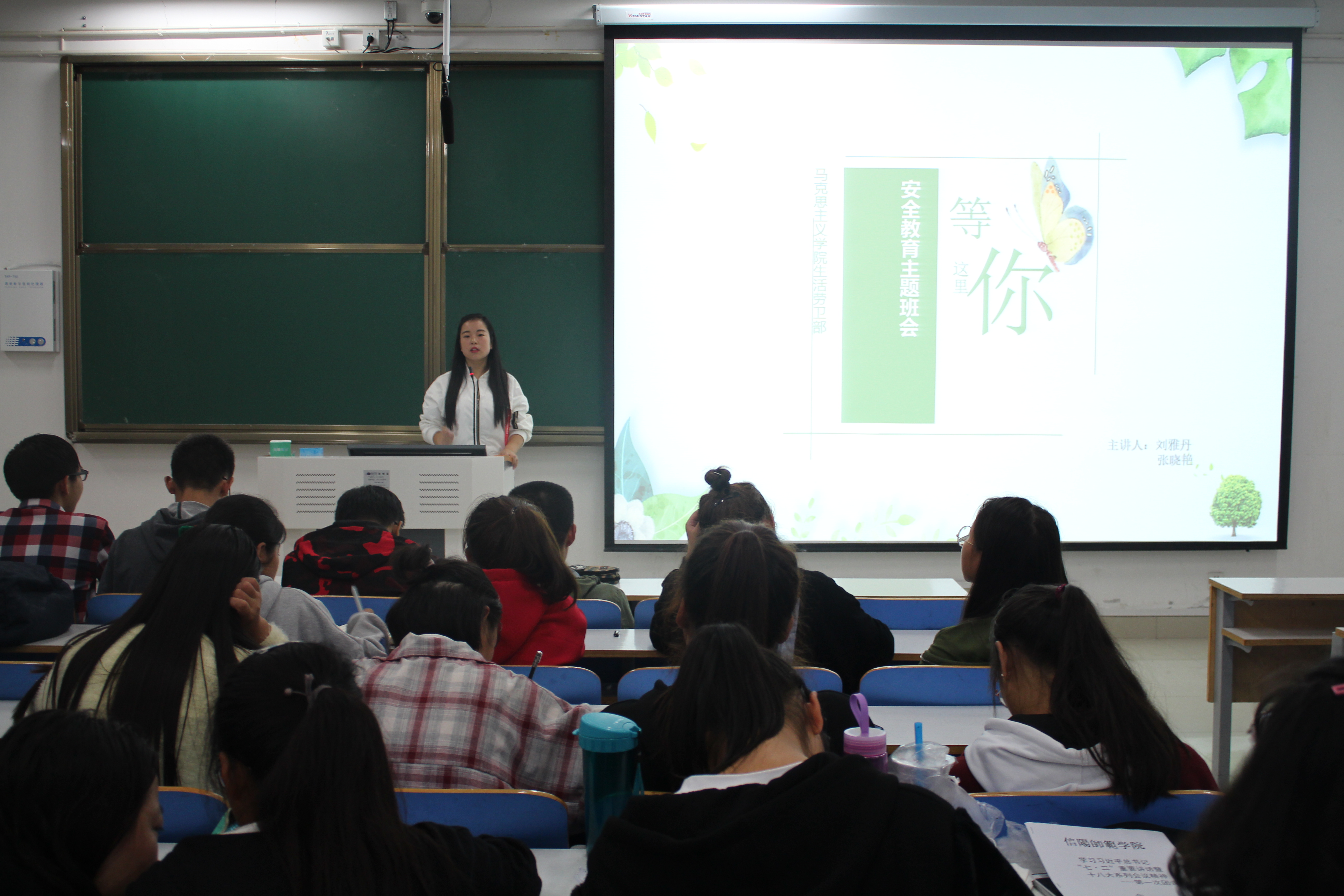 为提高世俱杯官网新生自我安全防范意识,10月15日晚,世俱杯官网在社科楼516教室组织召开了题为“安全在我心中”的安全教育主题班会。学生会副主席常爽爽、薛文静,生活劳卫部上届负责人张威,现任负责人刘雅丹、张晓艳及2018级全体新生共同参加了此次主题班会。班会由生活劳卫部负责人刘雅丹和张晓艳主持。