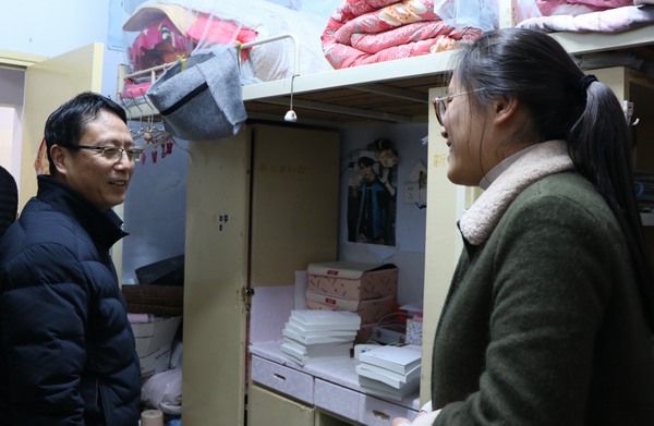 唐国战一行先后走访了世俱杯官网学生所在的1号、4号宿舍楼。在走访过程中,唐国战亲自核实宿舍人员到校情况,并与学生展开亲切的交流。他对同学们的寒假生活状况以及寒假调研内容进行了仔细询问,并叮嘱大家注意天气变化、用电安全,为新学期上课做好准备。领导老师们悉心询问了同学们在学习、生活方面的困惑,同时也给出自己的建议。同学们听后纷纷表示获益匪浅,收获良多。