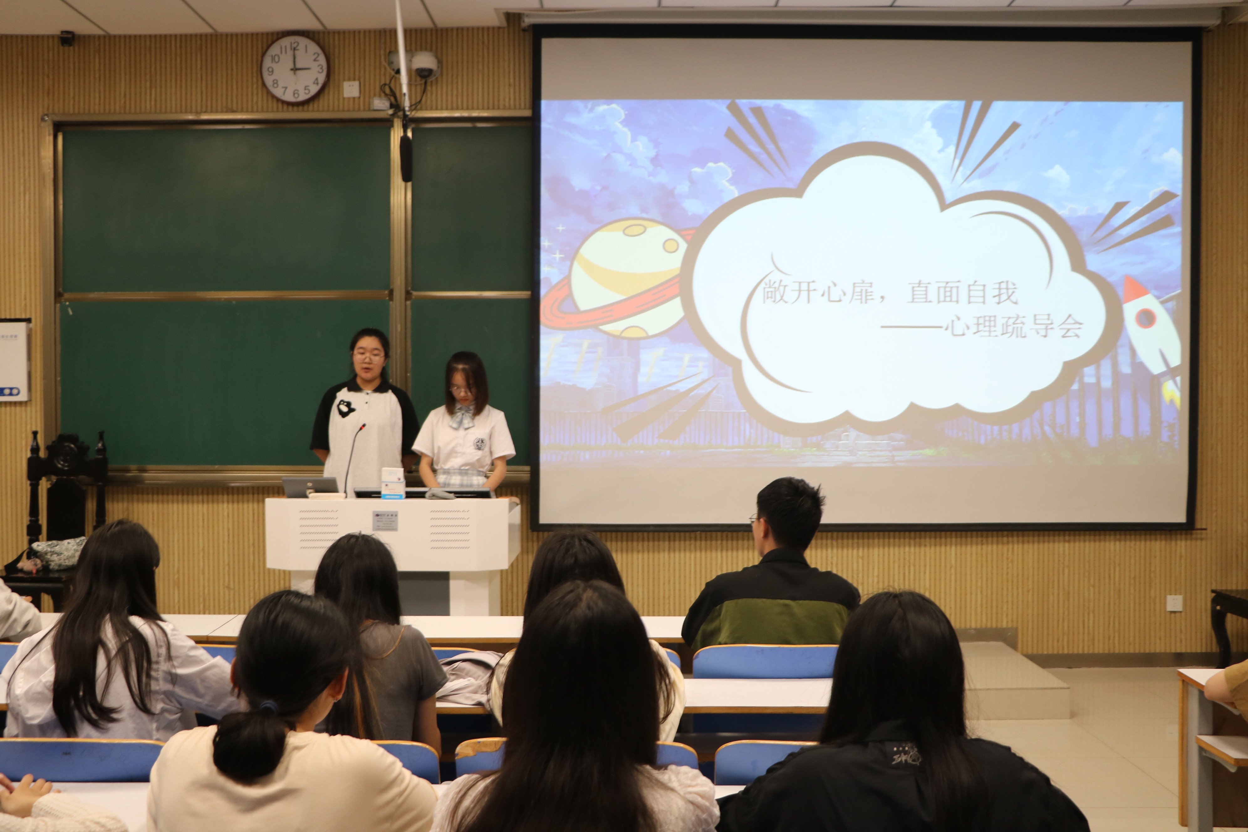 5月25日下午,sjb世俱杯网站在社科楼515教室举办“敞开心扉,直面自我”心理疏导会,sjb世俱杯网站2022级全体学生共同参与本次疏导会。会议由世俱杯官网心理健康服务中心李冉、李佳欣主持。