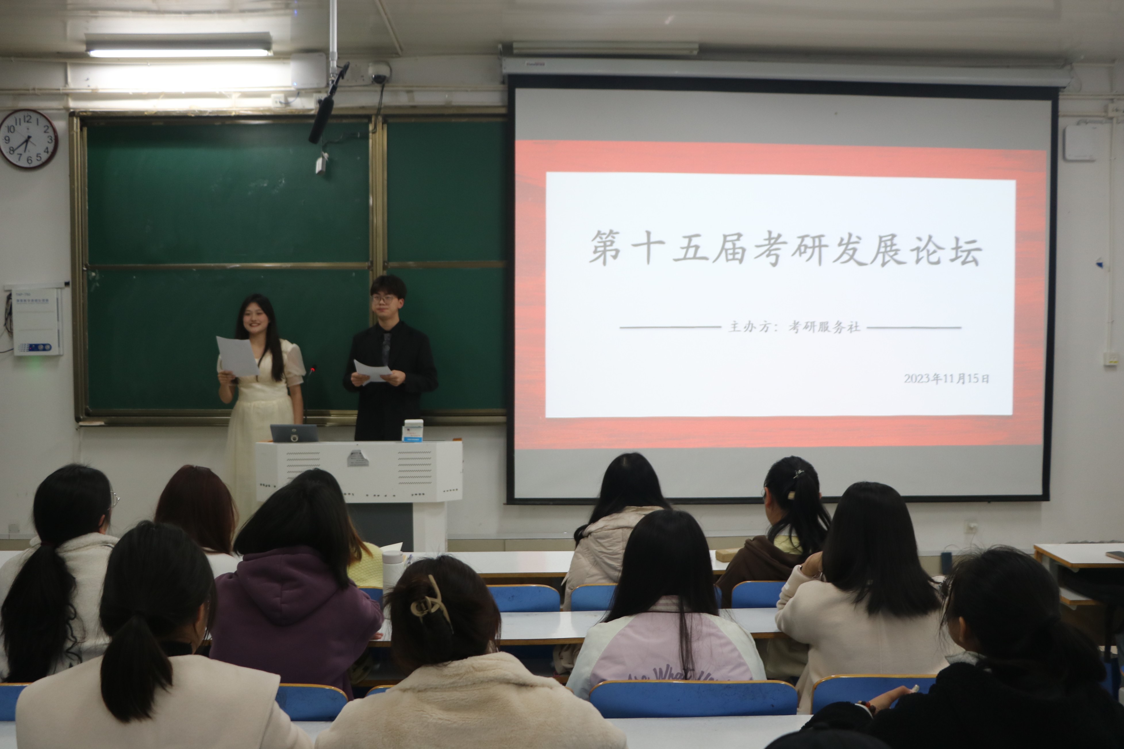 道阻且长,行则将至。11月15日晚,由sjb世俱杯网站考研服务社组织的第十五届考研发展论坛活动在社科楼514教室顺利举行。文都考研辅导老师熊瑛、社团发展与服务中心代表、考研服务社兄弟社团代表出席活动。此次活动由潘姿羽、季琳昊主持。