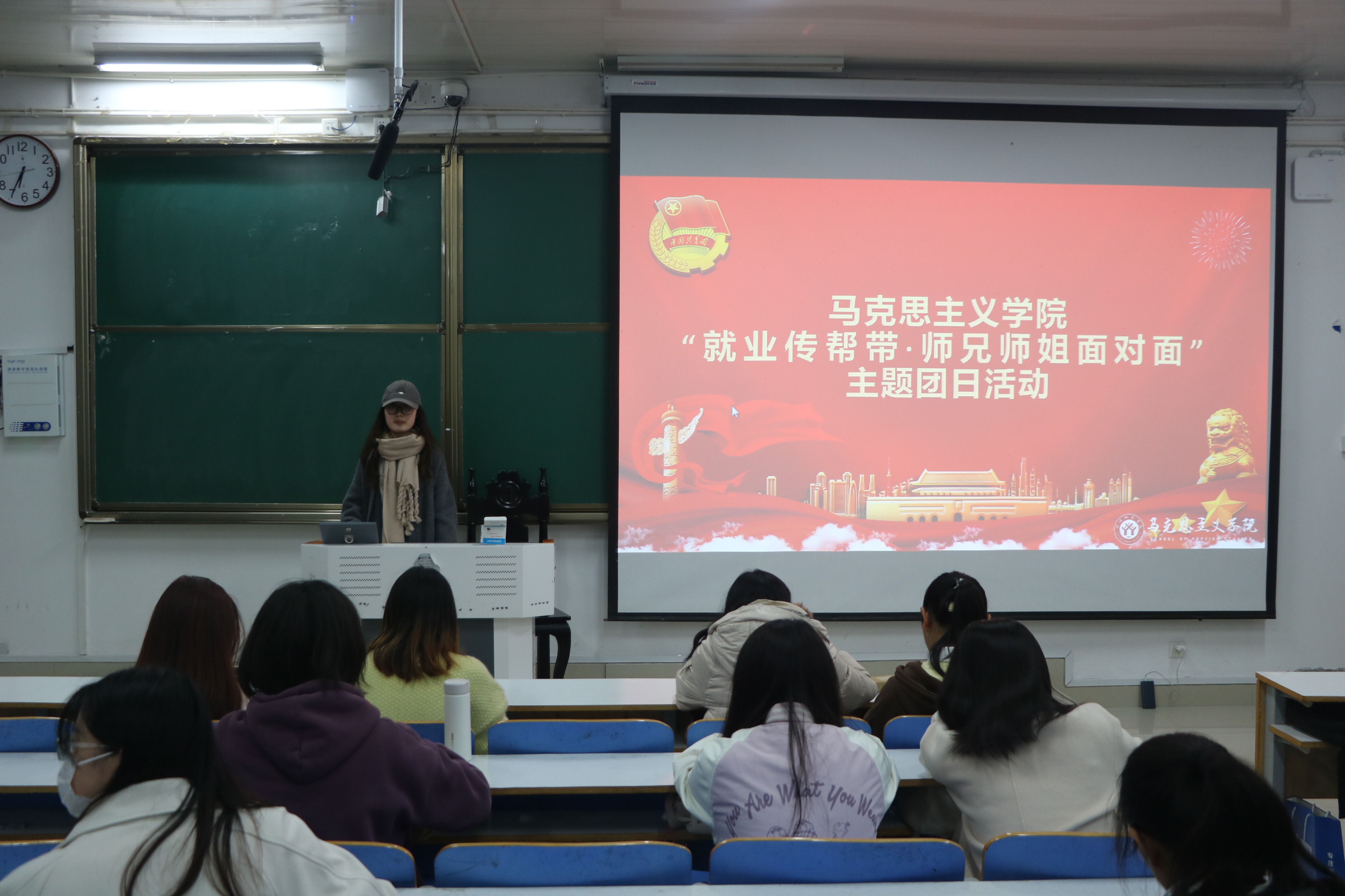 为强化就业育人实效,促进世俱杯官网毕业生高质量就业,11月17日下午,sjb世俱杯网站团委联合考研服务社在社科楼515教室举办“就业传帮带·师兄师姐面对面”主题团日活动。本次活动由团支部副书记杨可主持,世俱杯官网学子共同参加。