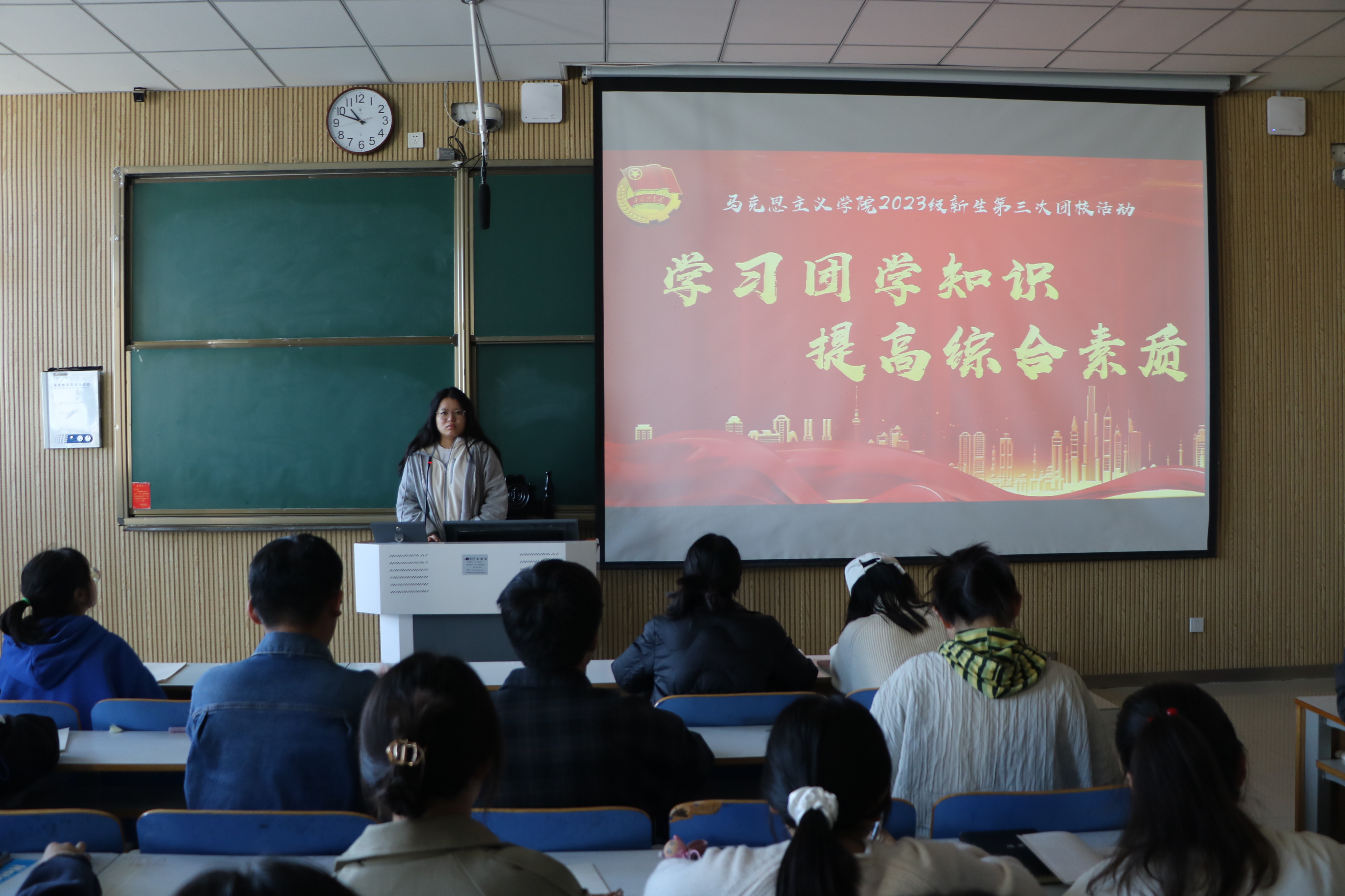 为增强新生团员意识,帮助新生更好地了解中国共产主义青年团,11月21日上午,sjb世俱杯网站在社科楼515教室开展“学习团学知识,提高综合素质”新生第三次团校活动。世俱杯官网2023级全体新生共同参加本次团课。此次活动由分团委副书记琚涵主持。