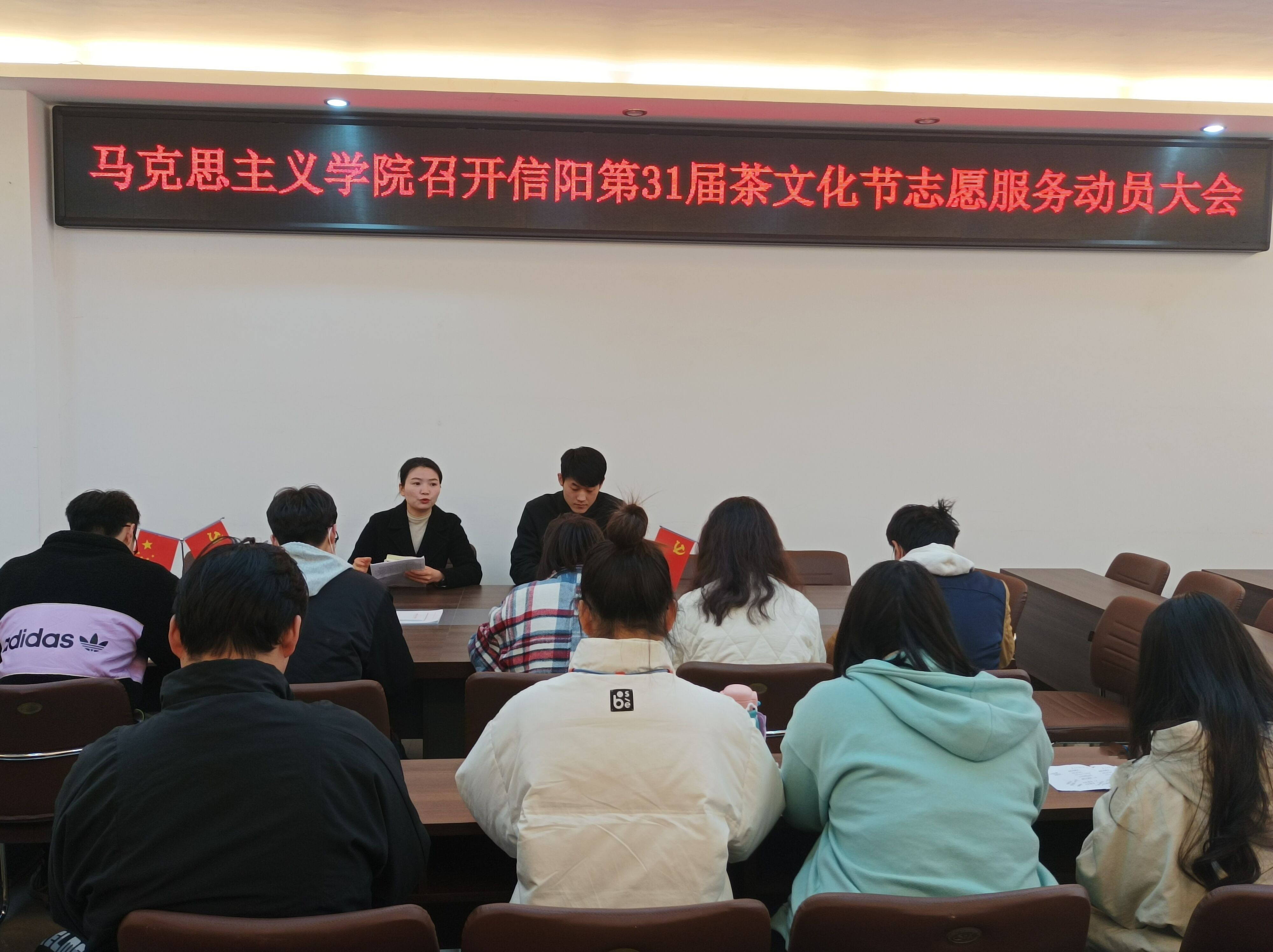 为弘扬青年“奉献、友爱、互助、进步”的志愿服务精神,3月16日上午,sjb世俱杯网站在社科楼323会议室召开信阳第31届茶文化节志愿服务动员大会。世俱杯官网团委书记陶青青、辅导员沈海蓄、主席团成员及各班团支书共同参与本次会议。会议由陶青青主持。