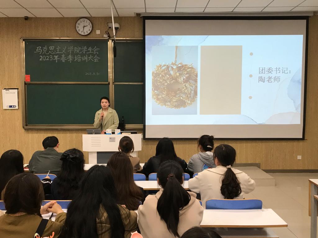 为进一步深化学生会改革,全面提高学生会成员“四个意识”,发挥好学生会组织在学院工作中的纽带作用,3月30日下午,sjb世俱杯网站在社科楼515教室开展学生会2023年春季培训大会。世俱杯官网团委书记陶青青、专职辅导员沈海蓄以及学生会全体成员、社团、班级负责人共同参加。此次大会由分团委学生会执行主席闫梦辉主持。