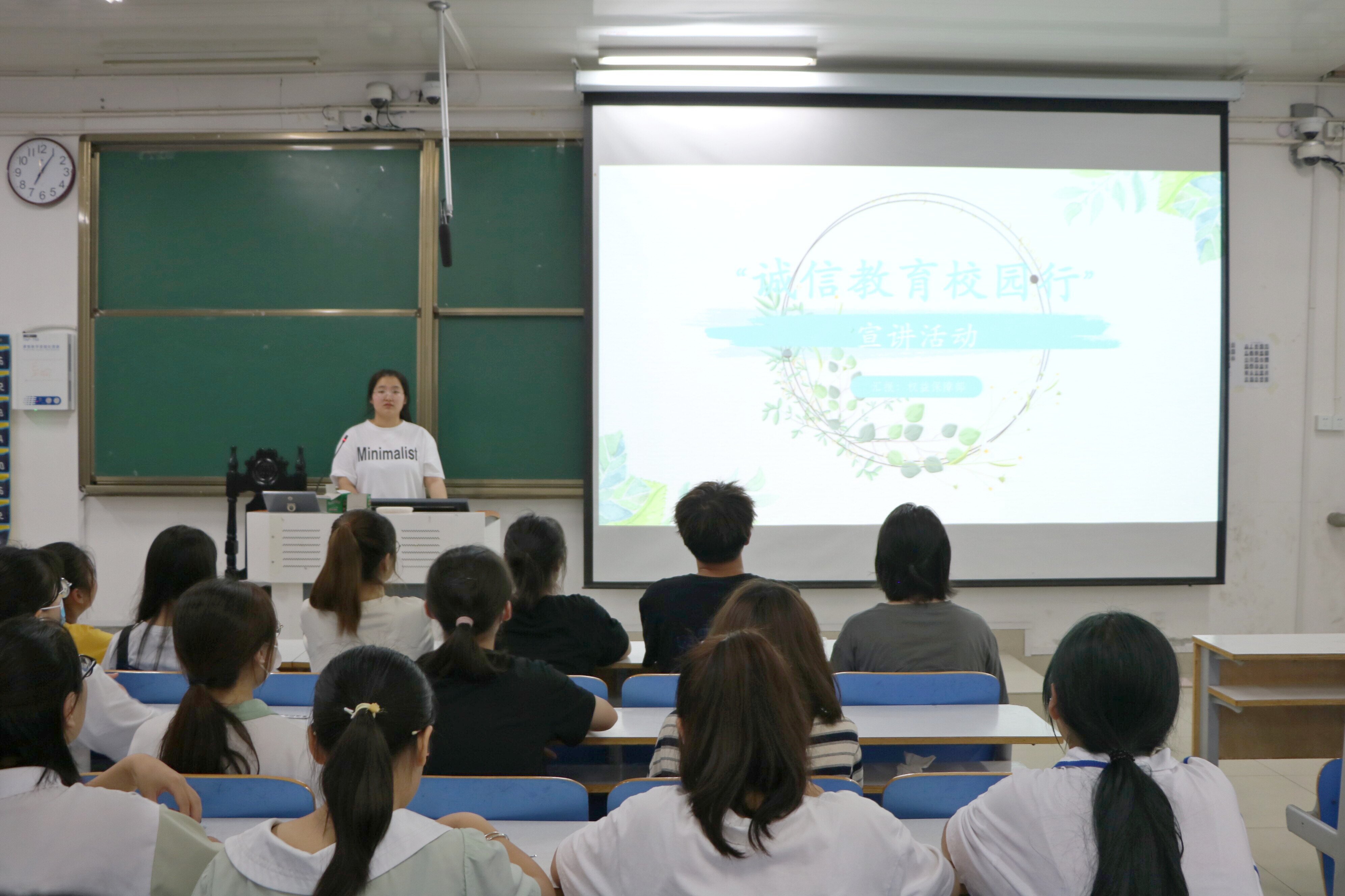 5月25日晚,sjb世俱杯网站在社科楼516教室开展“诚信教育校园行”宣讲活动。2021级全体同学参加此次宣讲活动。活动由权益保障部负责人宋佳怡主持。